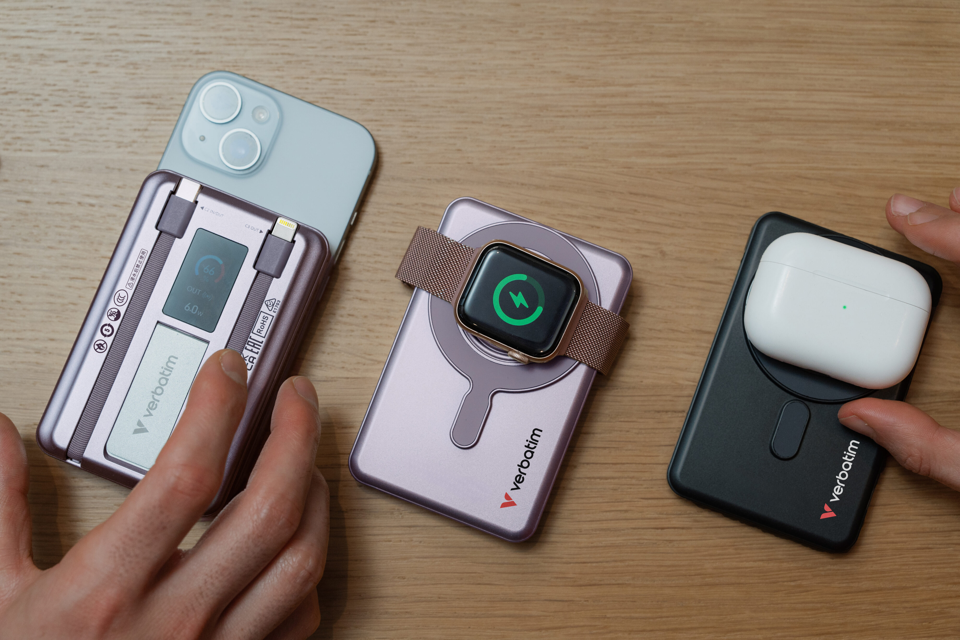 - Built-in USB-C & Lightning cables with supporting up to 22.5W + 12W output
