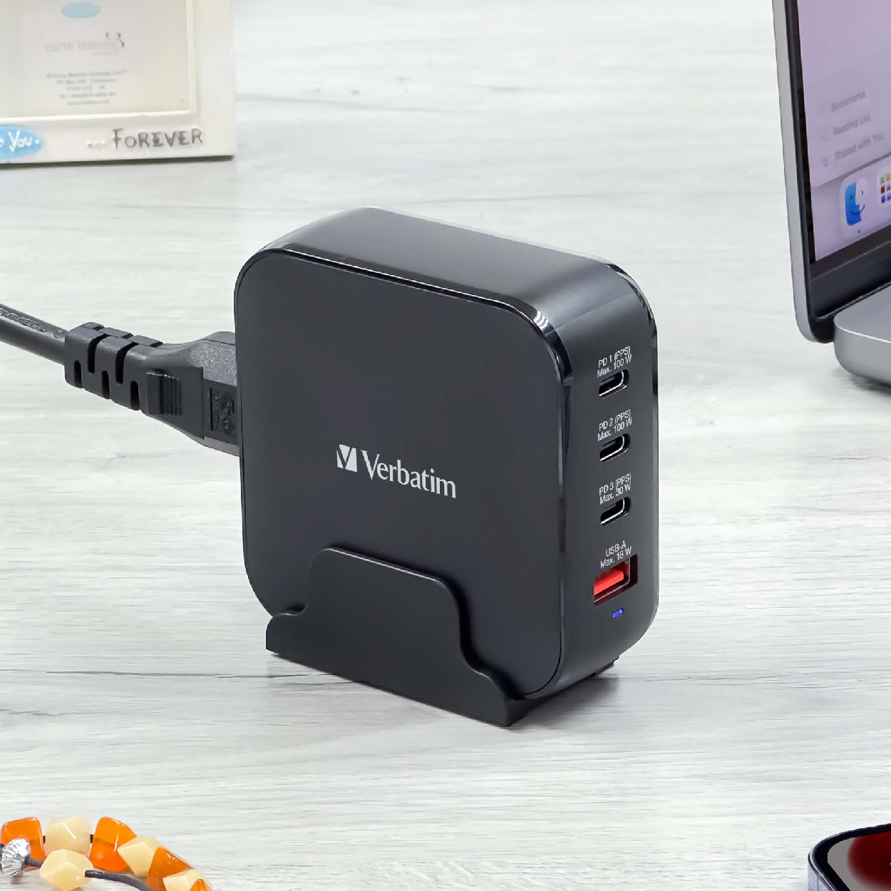 The charger utilizes the next-generation “GaN (Gallium Nitride)” technology, which allows for a smaller and slimmer design while still delivering powerful output. The included stand allows the charger to be used in either a flat or upright position on a desk, making it suitable for use at home or in the office. The charger can charge up to 4 devices simultaneously with a maximum total output of 150W.