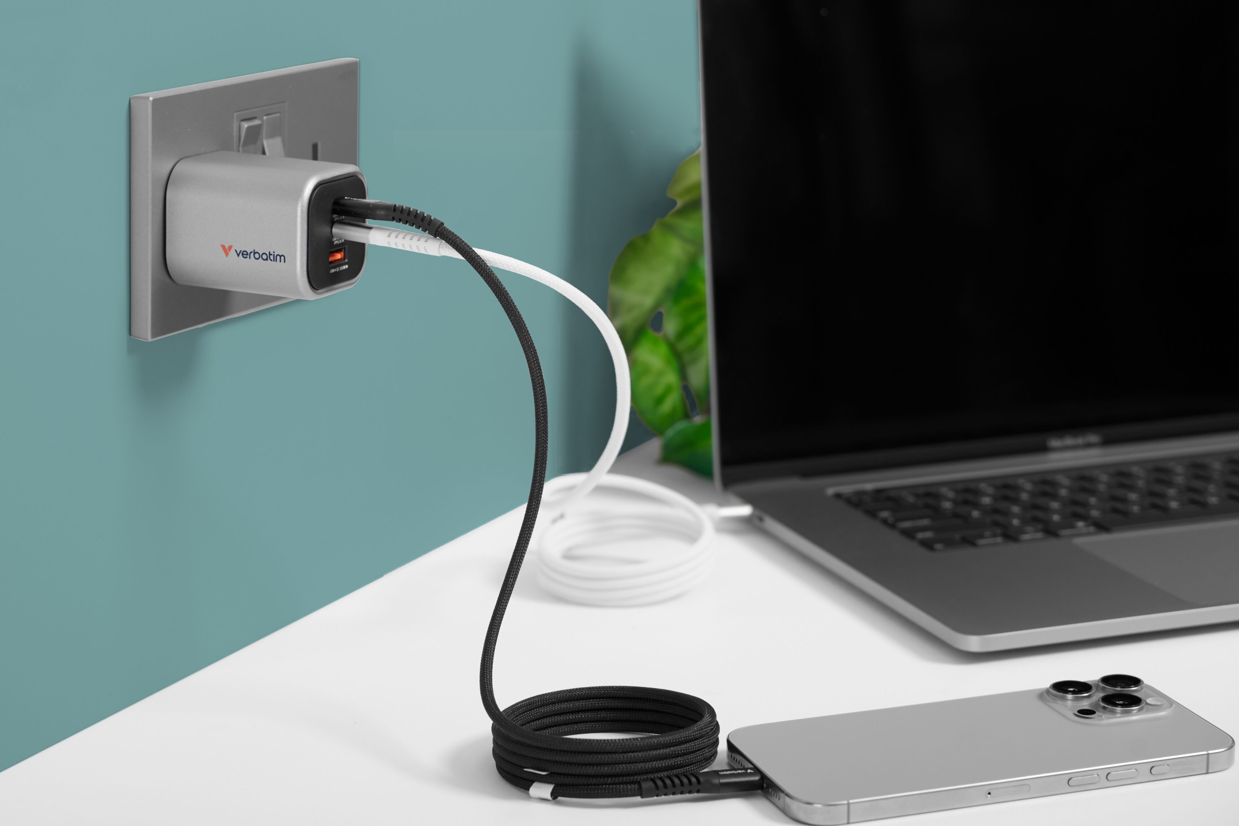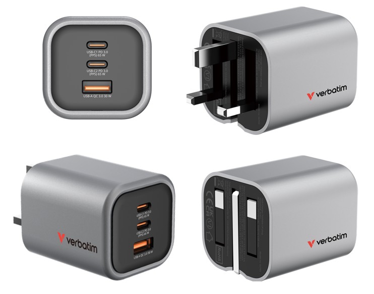 - Verbatim GaN Charger Foldable UK Plug 65W with 2 x USB-C 1 x USB-A